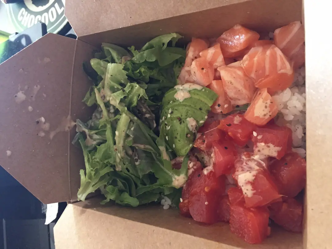 水耕菜沙律、三文魚吞拿魚牛油果壽司飯