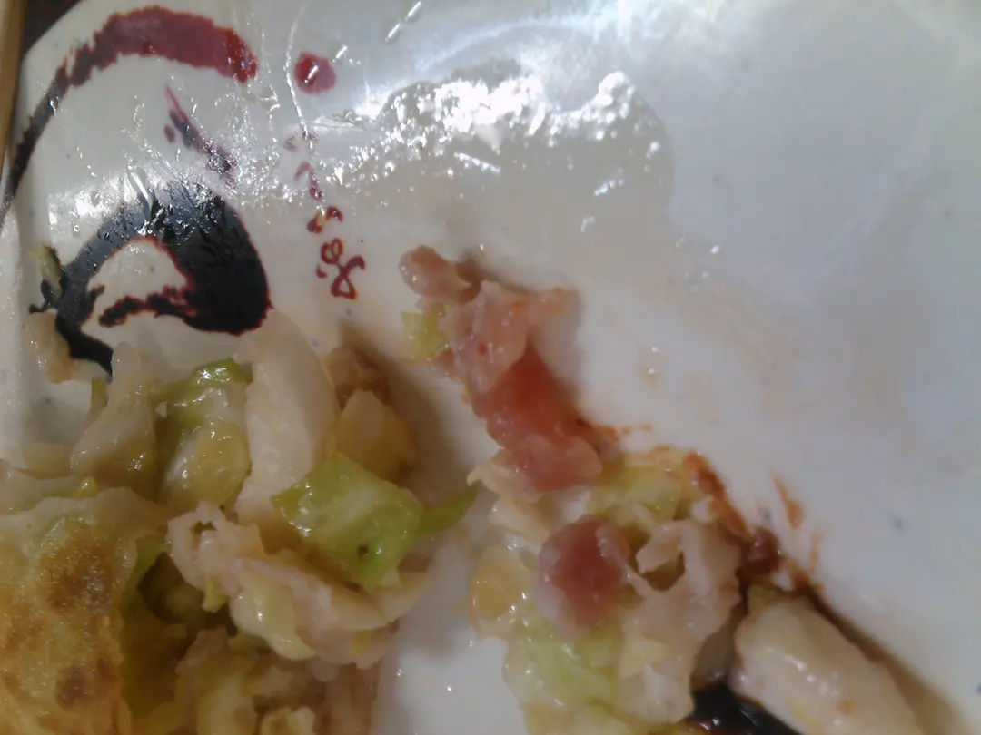 一粒餃子 得兩粒肉 兩粒都係生。