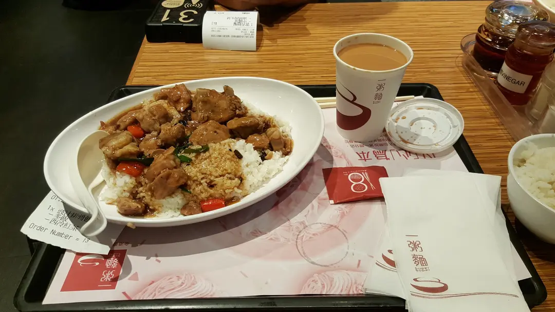 豉汁排骨飯配熱奶茶