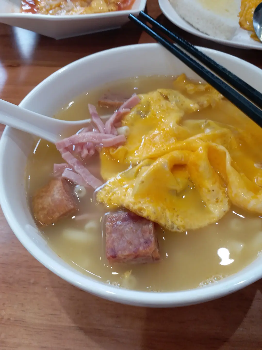 火腿絲,餐肉粒炒蛋通粉