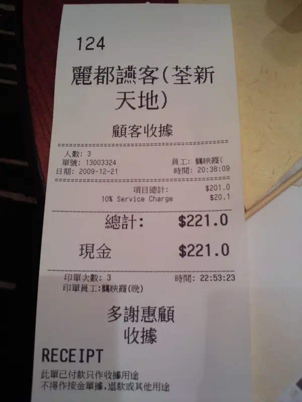 三位埋單 HKD221.00