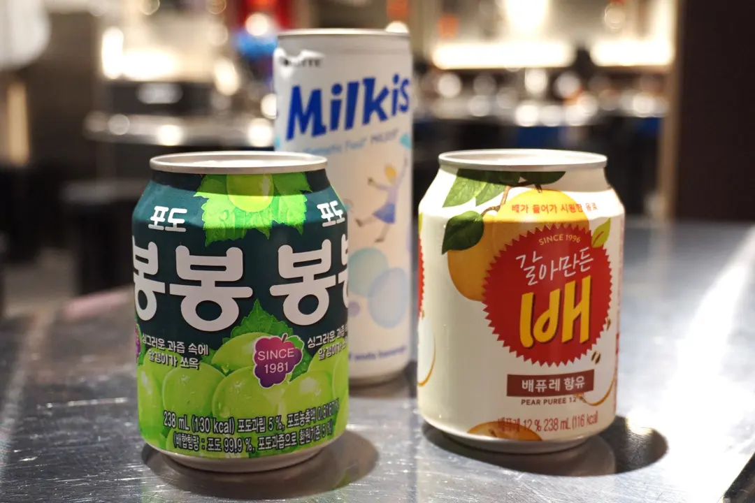 葡萄汁、乳酸汽水、梨汁