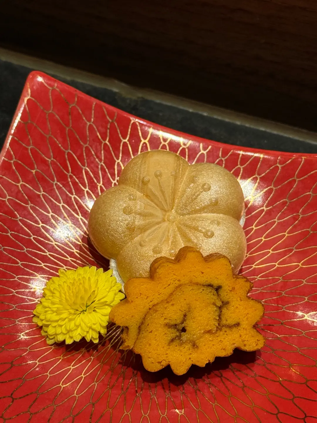 三文魚籽醬醋蟹肉最中餅 配 伊達卷
