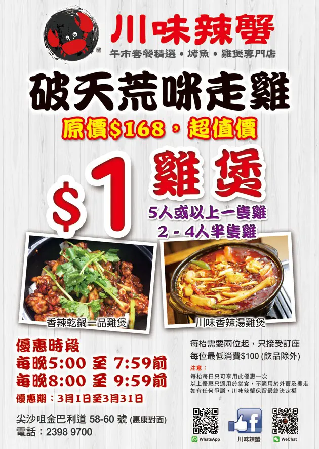 三月份優惠一蚊雞煲