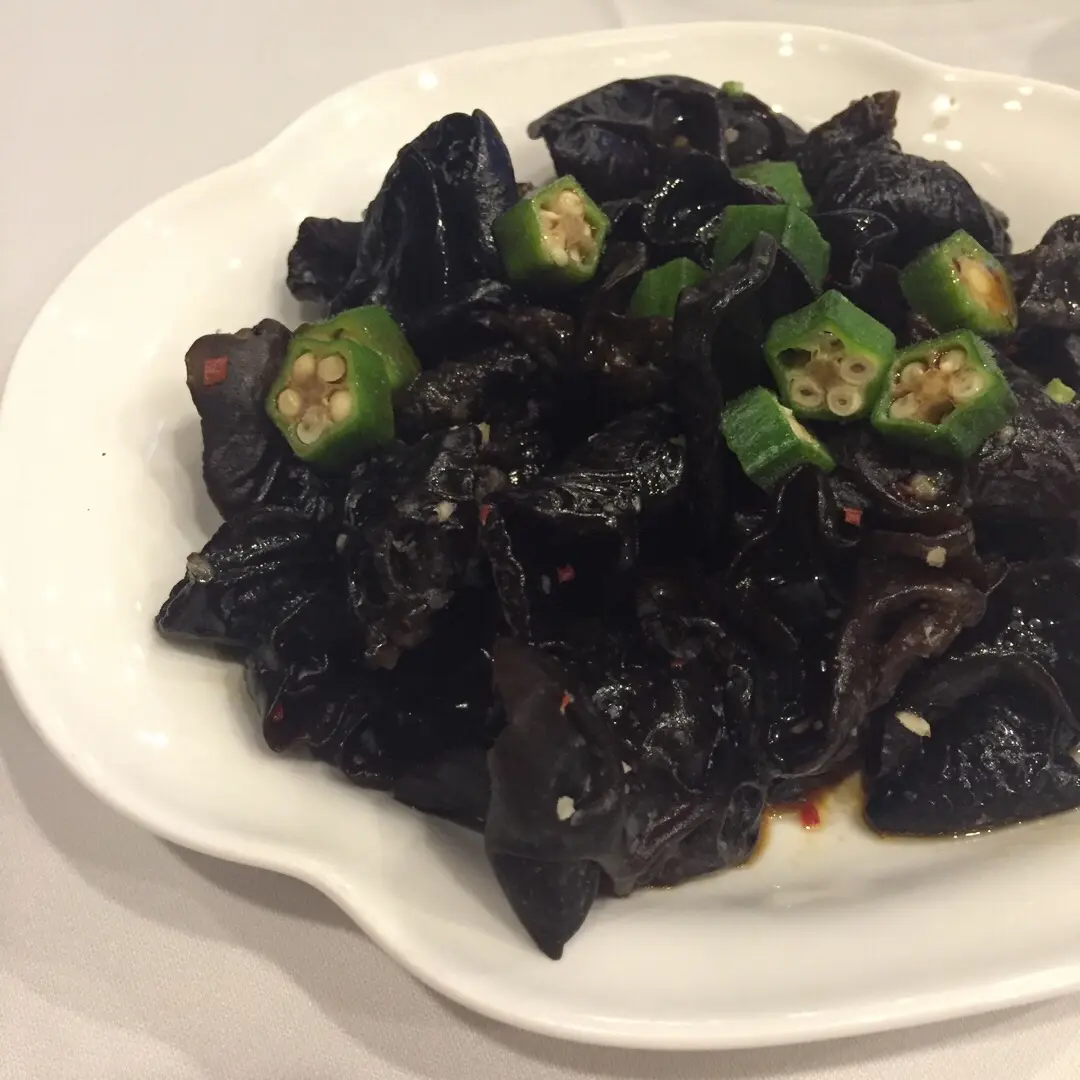 Black Fungus with Okra, Black Vinegar Sauce