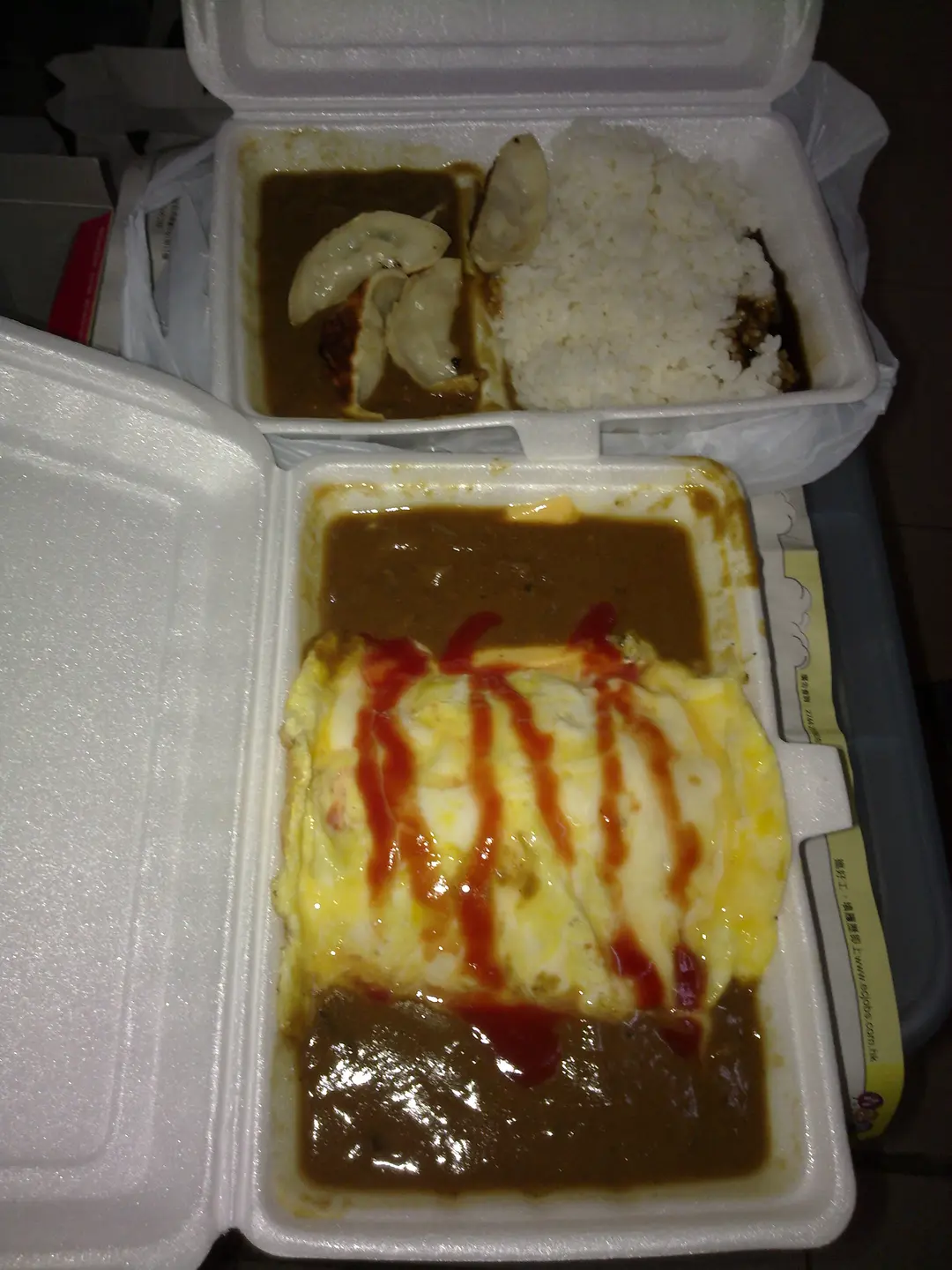 下面係蛋包飯,上面係餃子飯