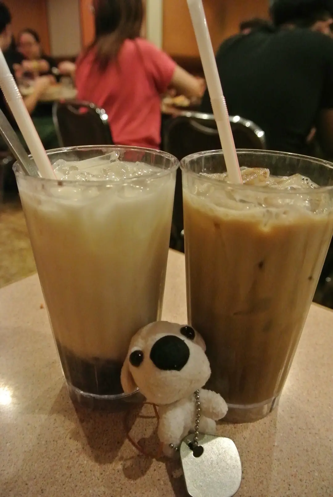 左紅豆冰、右凍啡