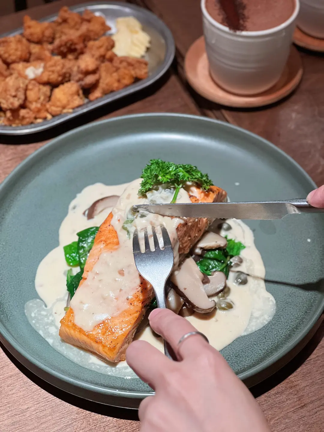 挪威三文魚扒伴菠菜忌廉汁