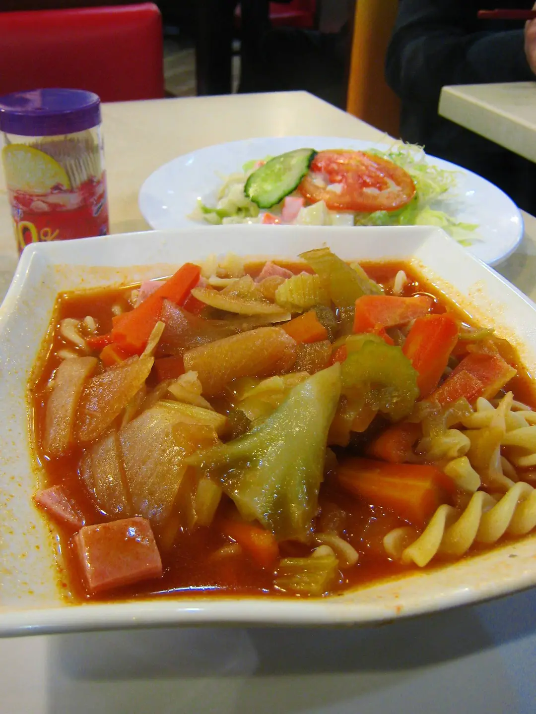不過蕃茄湯酸到喊; 雜菜就硬 kok kok 的