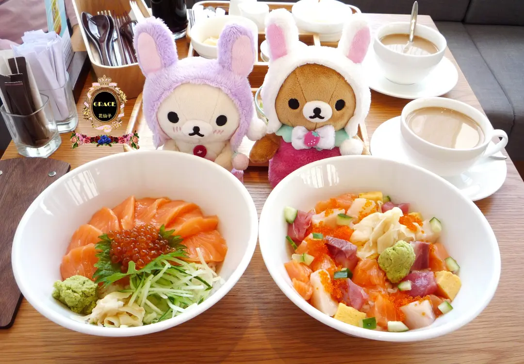 什錦刺身丼定食 + 三文魚親子丼定食 + 熱日式炭燒咖啡