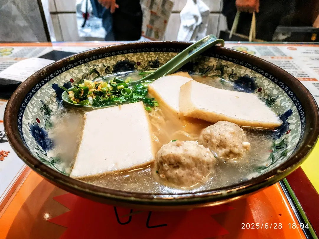 下午茶餐~豬肚丸拼魚片幼麵跟凍咖啡
