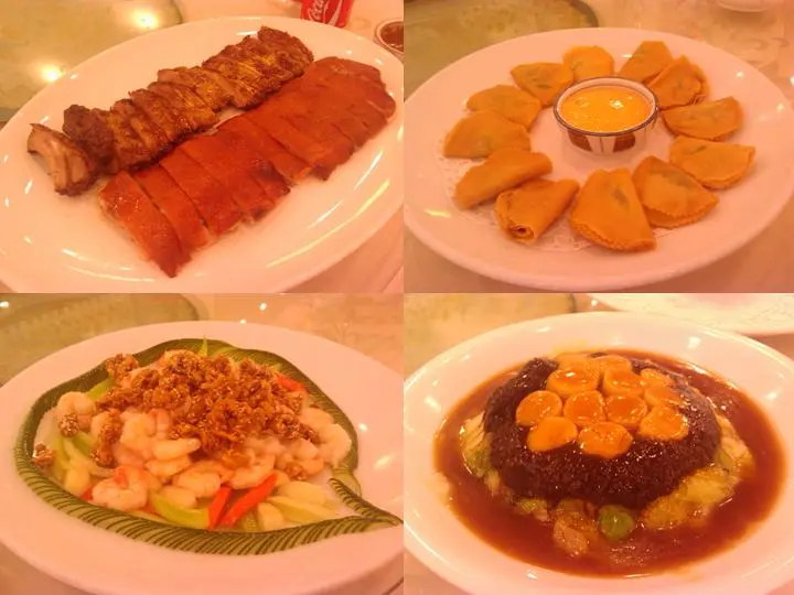 乳豬件拼烤骨, 千層寶盒, 富貴金錢蝦, 發財瑤柱甫