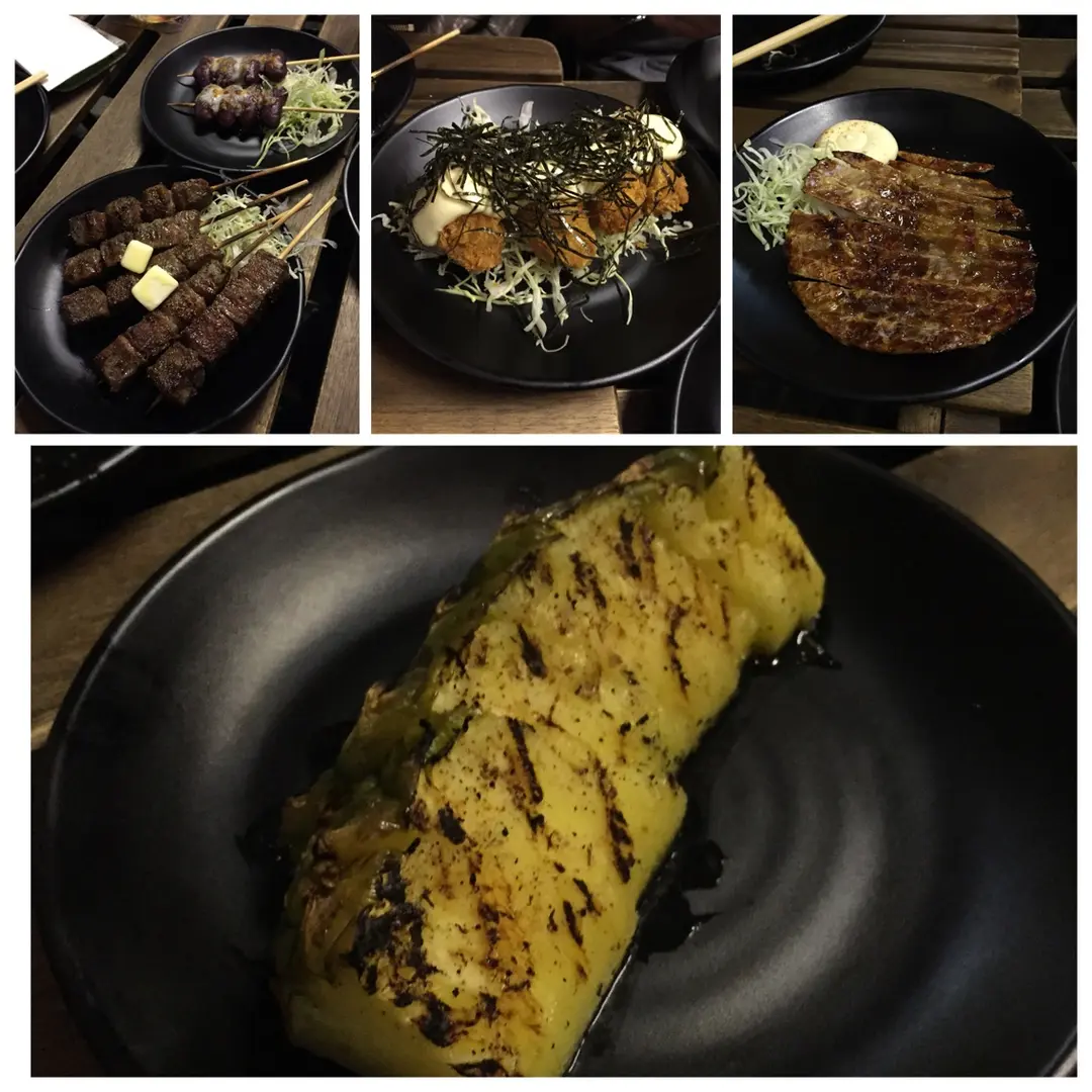 燒牛柳粒,燒吉列蠔,燒雞泡魚乾,燒菠蘿