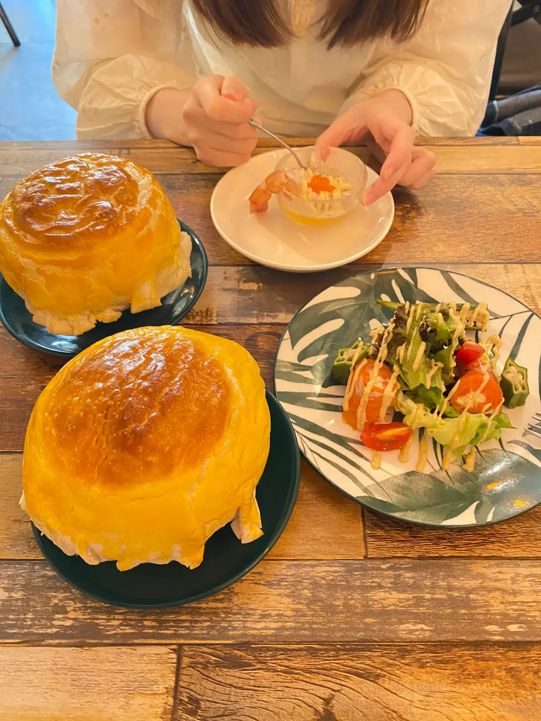 蝦啫喱同三文魚沙律,酥皮湯