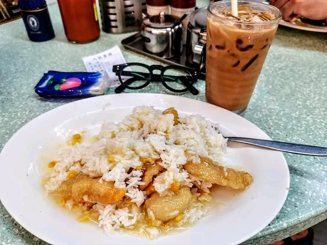 午餐~粟米魚塊飯跟凍鴛鴦