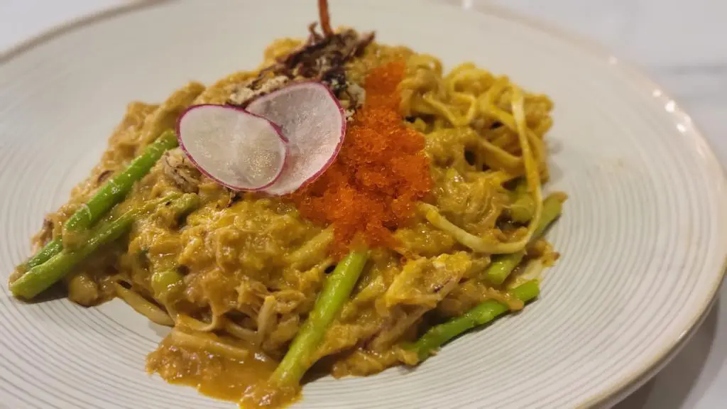 招牌龍蝦汁蟹肉伊面  Braised  Crab  Meat  E-fu  Noodles  in  Signature  Lobster  Sauce
