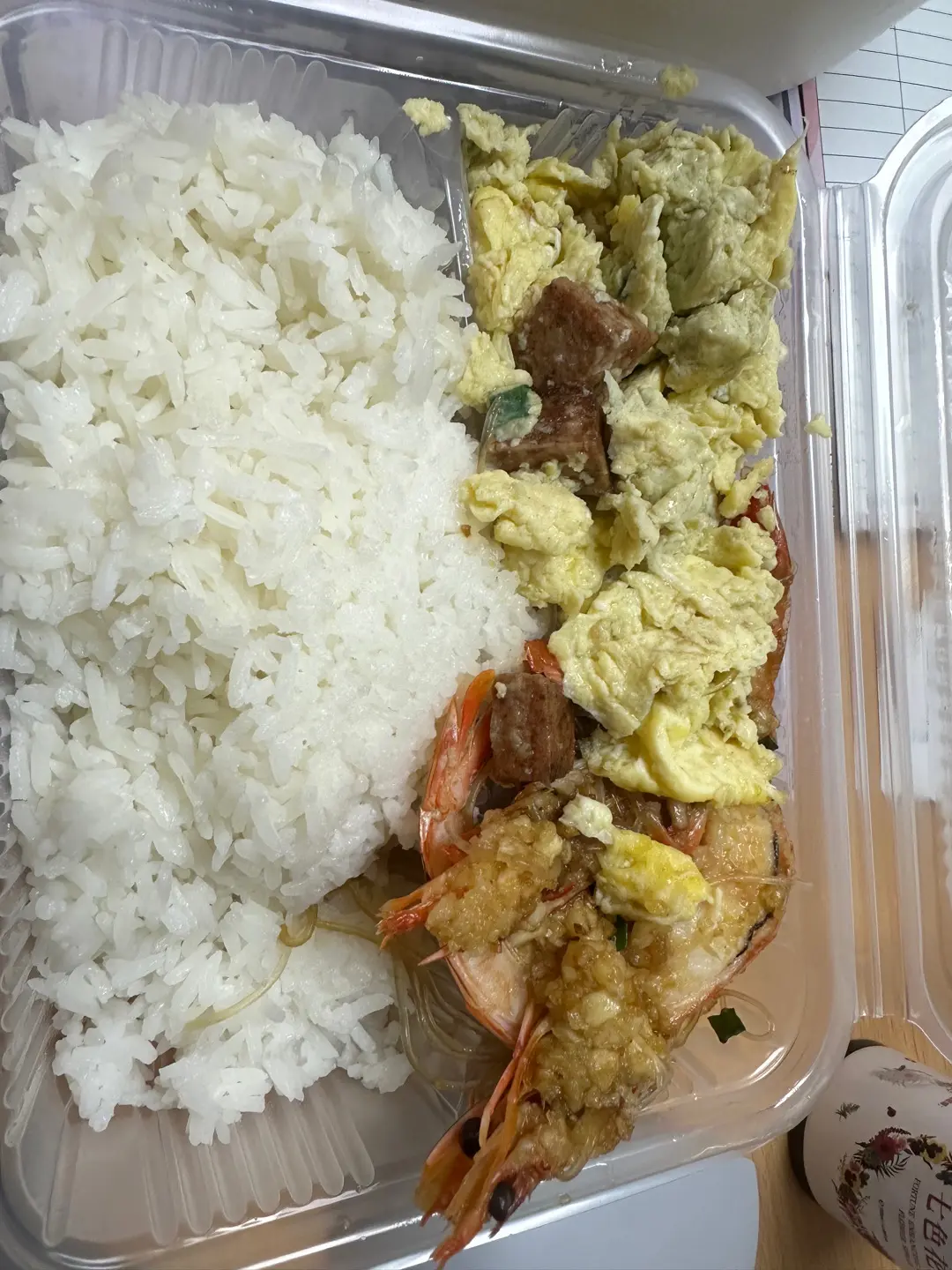 兩餸飯,蒜蓉蝦午餐肉蛋