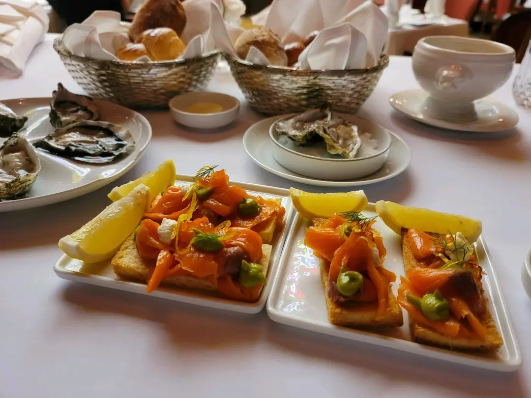 煙三文魚伴香脆多士配酸忌廉及刁草