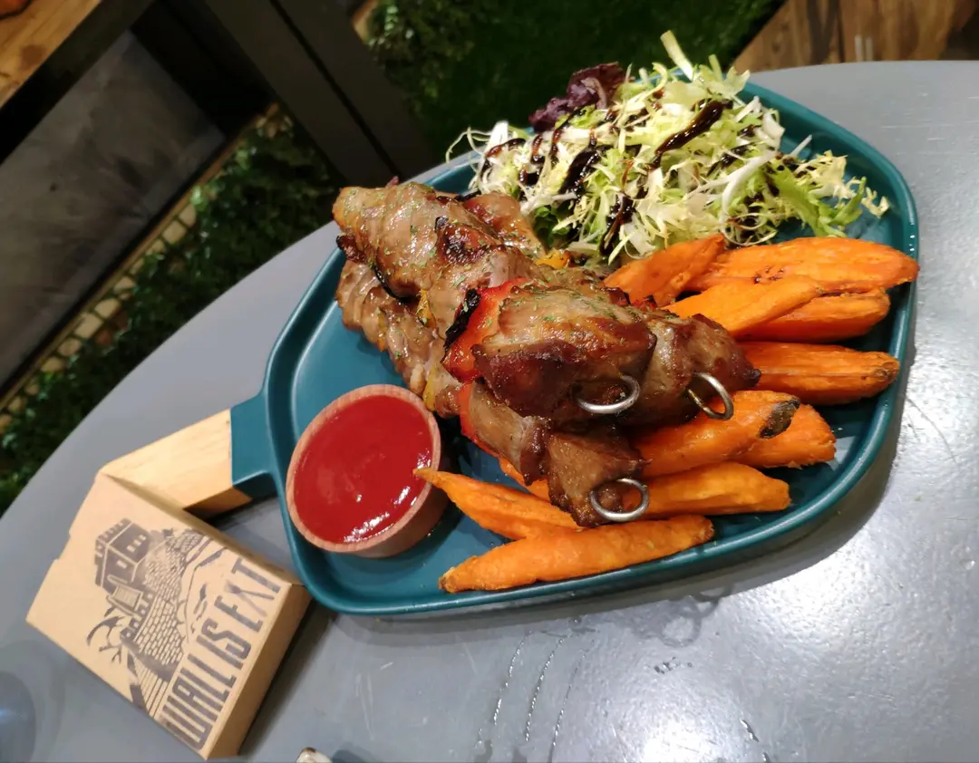 慢落豬(慢煮西班牙冰花酸梅黑毛豬串燒配甜蕃薯角)