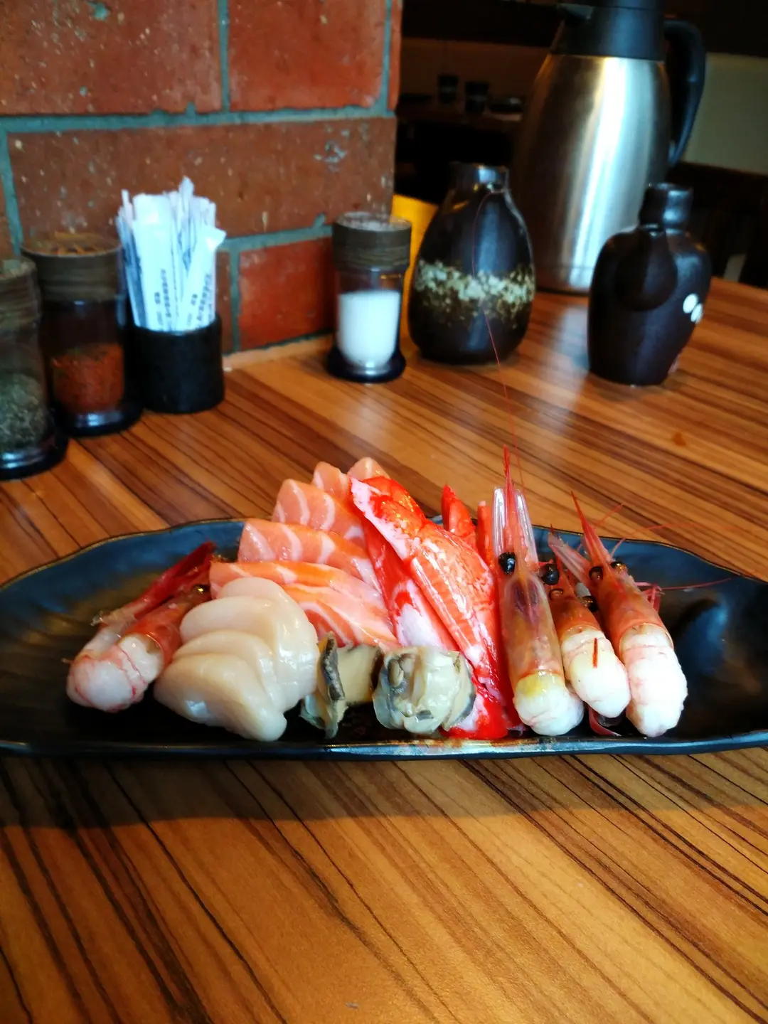 三文魚、甜蝦、松葉蟹棒、八爪魚及榮螺刺身