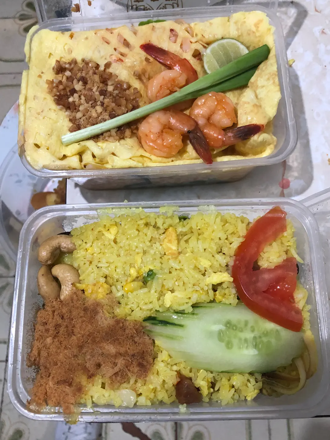 蛋包鮮蝦金邊粉+菠蘿海鮮炒飯