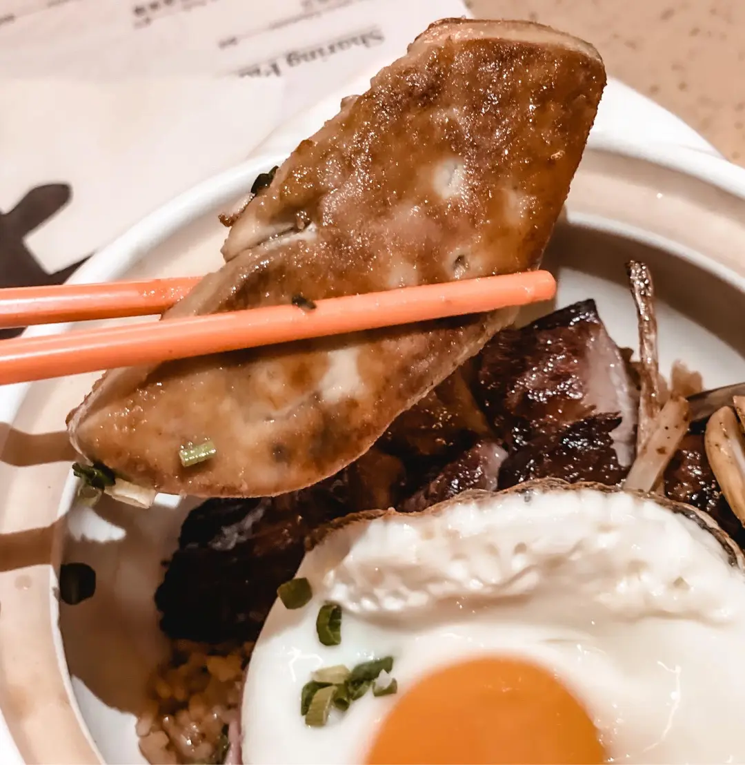 24小時慢煮伊比利亞叉燒,配煎日本太陽蛋、紅洋蔥漬,香噴噴香蔥豬油撈飯 (+西班牙肥鴨肝)