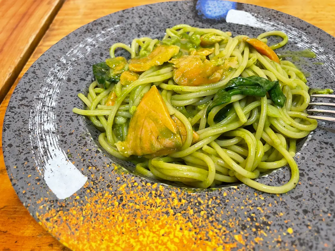 菠菜汁煙三文魚意粉