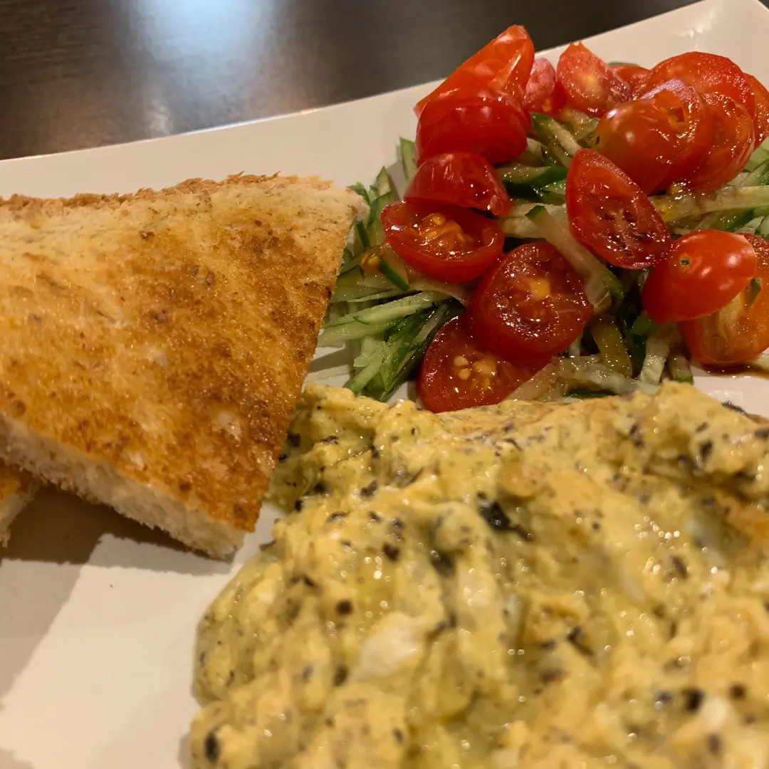 黑松露炒蛋配多士、車厘茄青瓜沙律