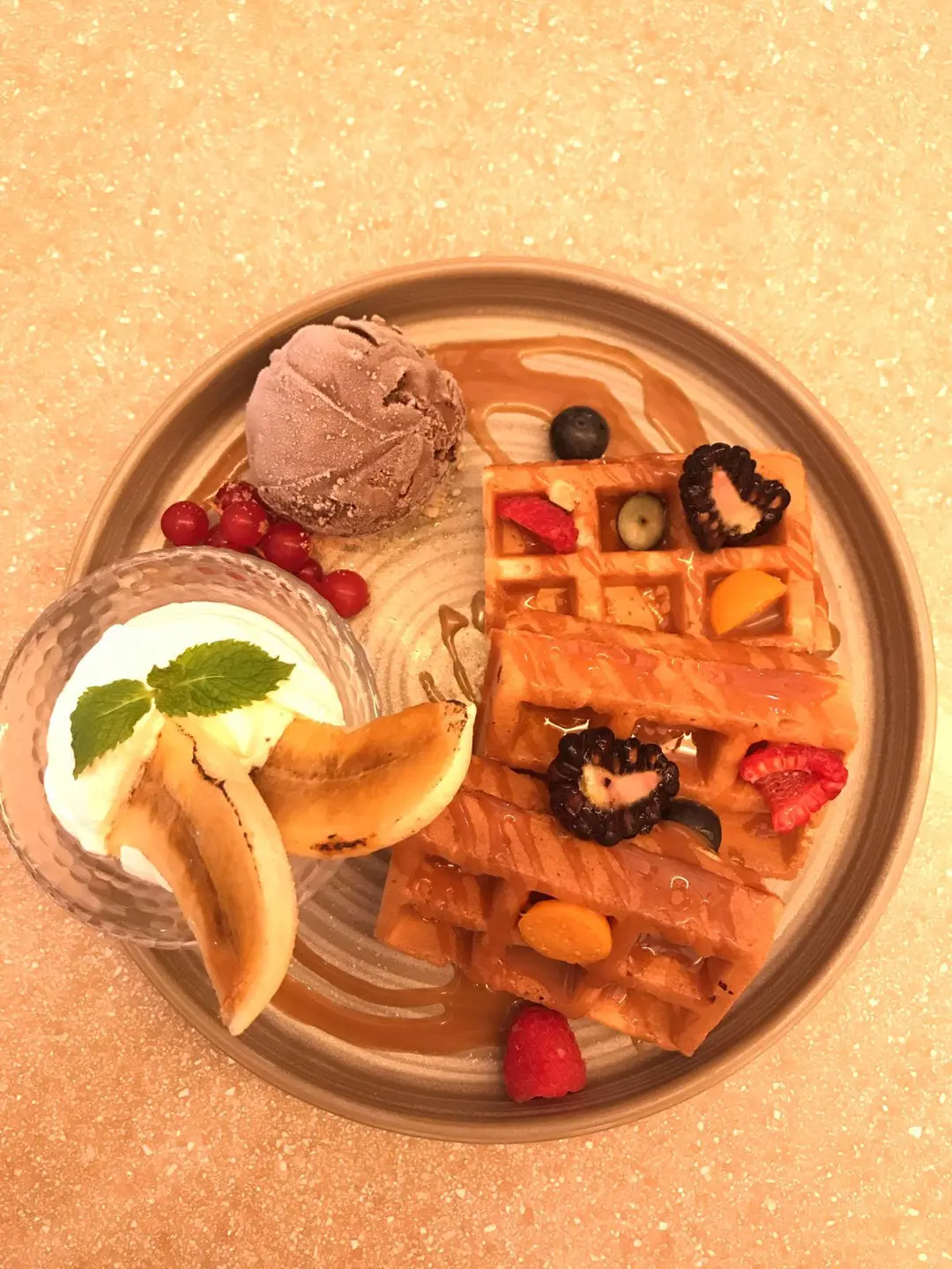 窩夫配焦糖香蕉