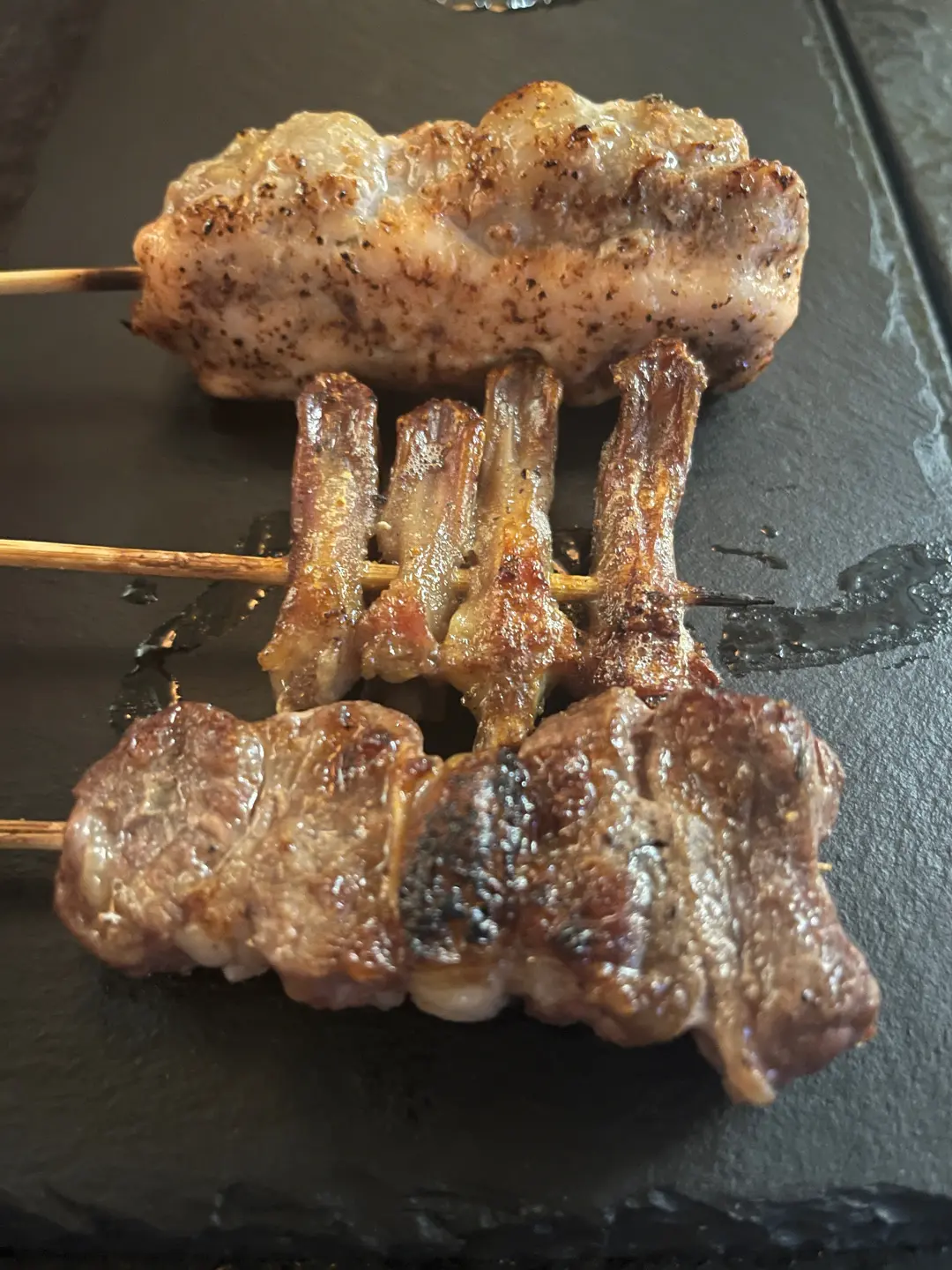 明太子雞腿肉、汁燒雞肝、牛肋條