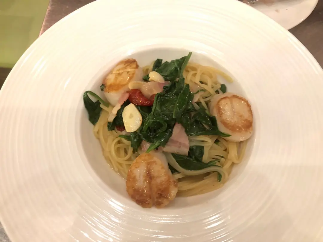 北海道帶子煙肉菠菜香辣蒜汁扁意粉