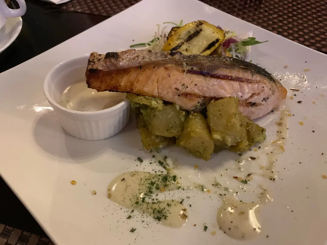 煎勺草挪威三文漁伴白豆牛油檸檬忌廉汁