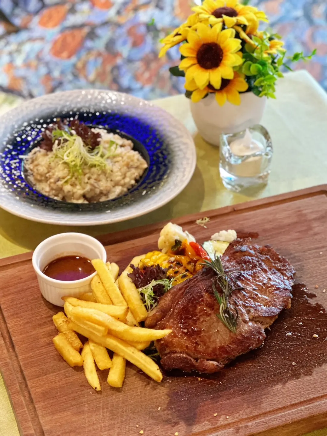 炭燒美國安格斯西冷牛扒伴乾菌及法國黃菌