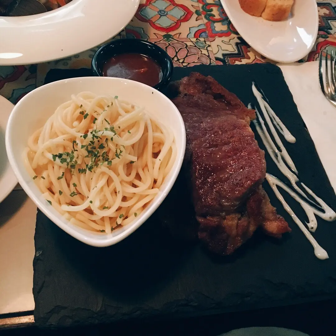 西冷扒配黑松露野菌汁(意粉)
