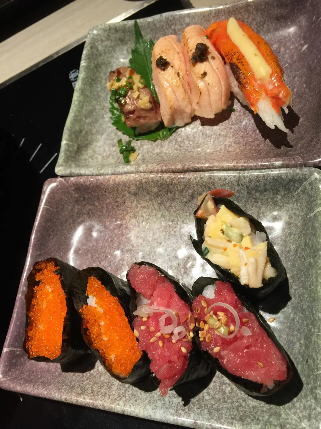 極品和牛壽司、黑松露燒三文魚壽司、醬燒皇帝蟹棒壽司