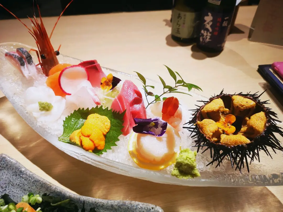 時令刺身10點$398 及 飛機紫海膽$180(右)