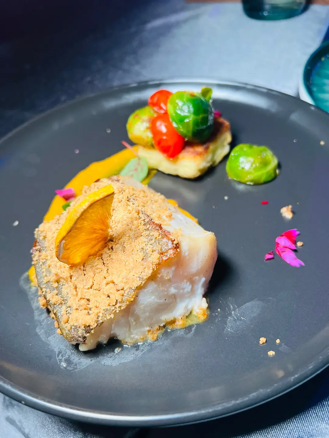 松露碎餅烤西班牙馬介休鱈魚柳•佛手柑南瓜忌廉汁