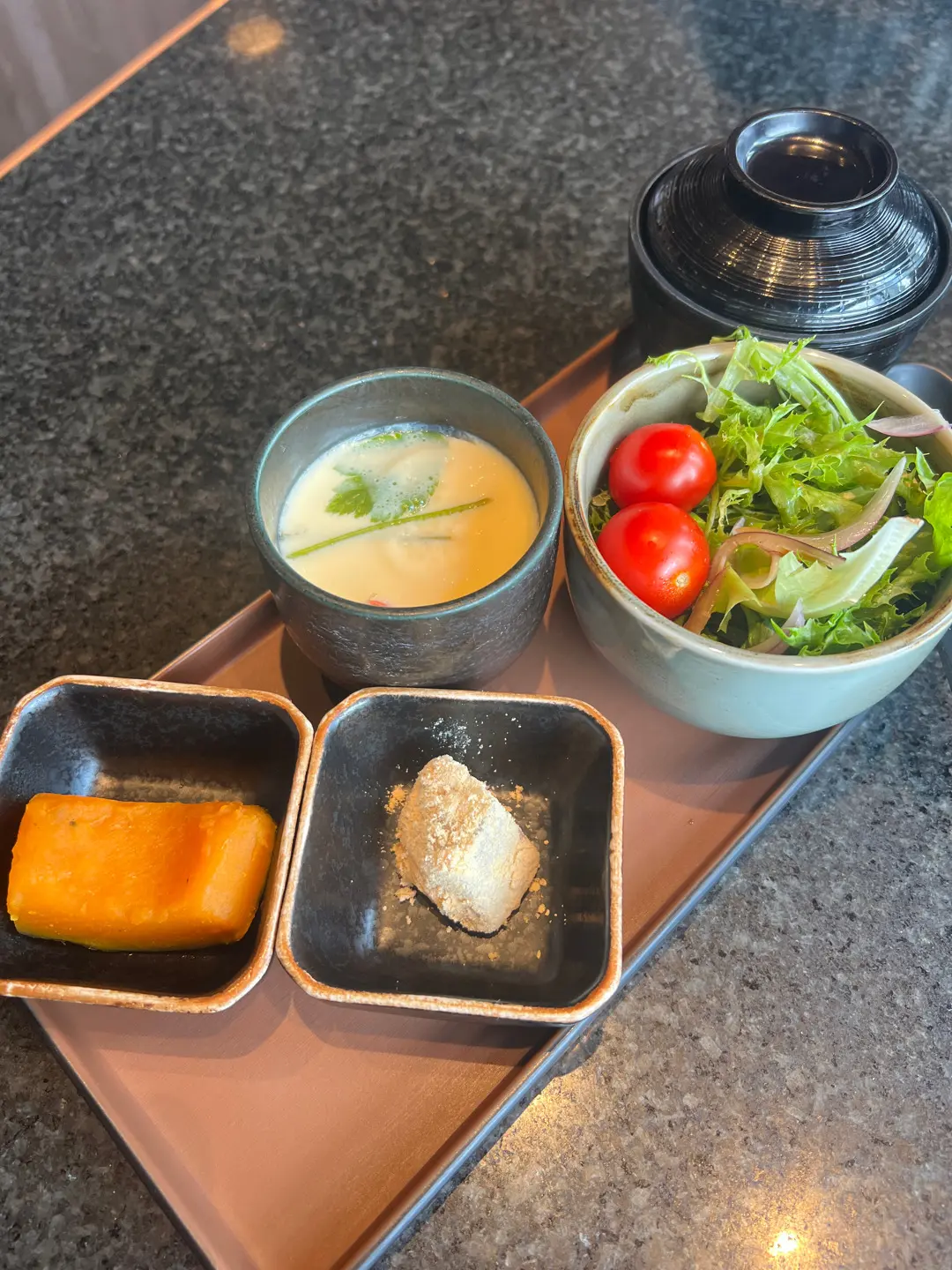 前菜、沙律、麵豉湯、甜品