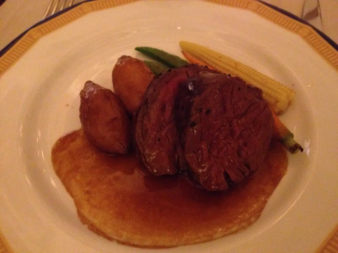 燒牛柳。燉薯仔。時菜