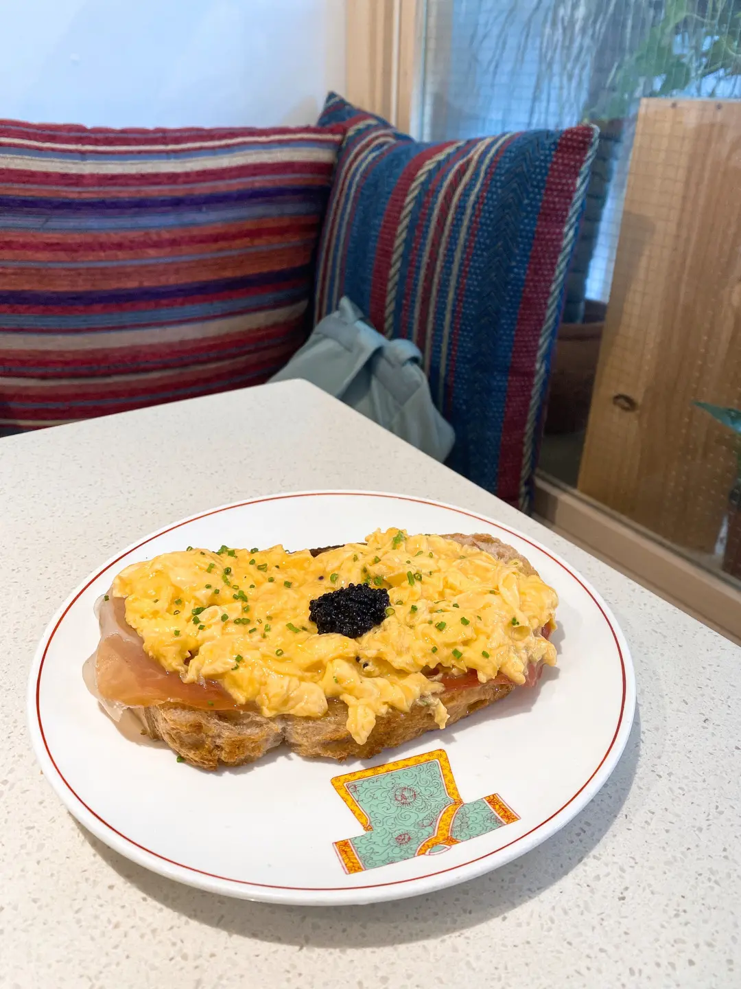 炒蛋、西班牙火腿、黑魚籽多士