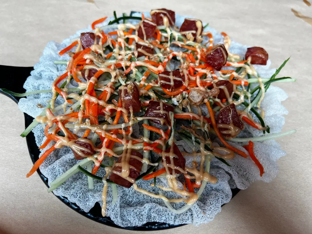 Crispy Rice Paper with Vietnamese Sausage & Pickled Carrots
