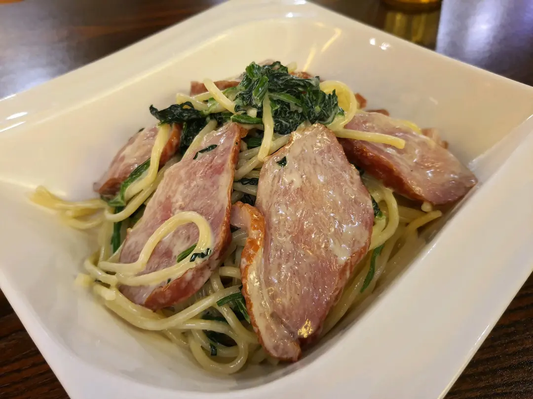 菠菜忌廉汁鴨胸意粉