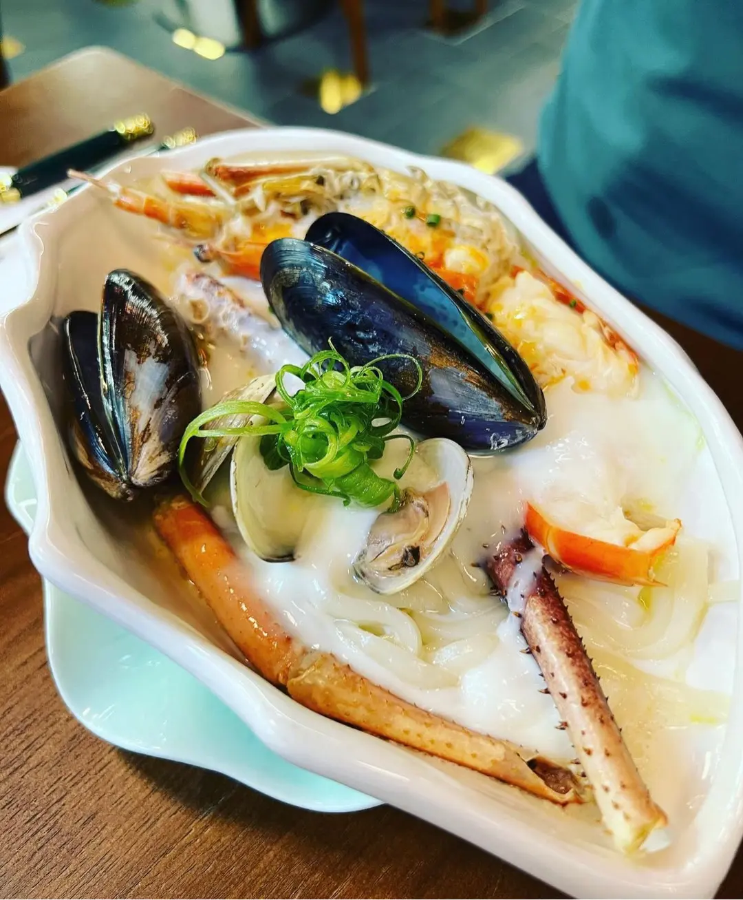 招牌雞油花雕蛋白蒸大頭蝦海鮮伴烏冬🦐 👍🏿: 🇨🇳午市$128 / Tea $118