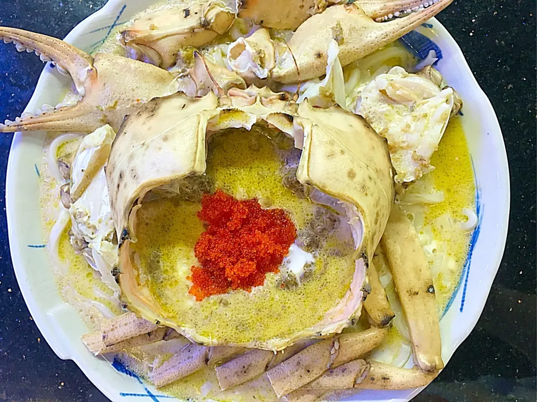 招牌雞油花雕蒸水晶蟹拌烏冬底🦀🍜