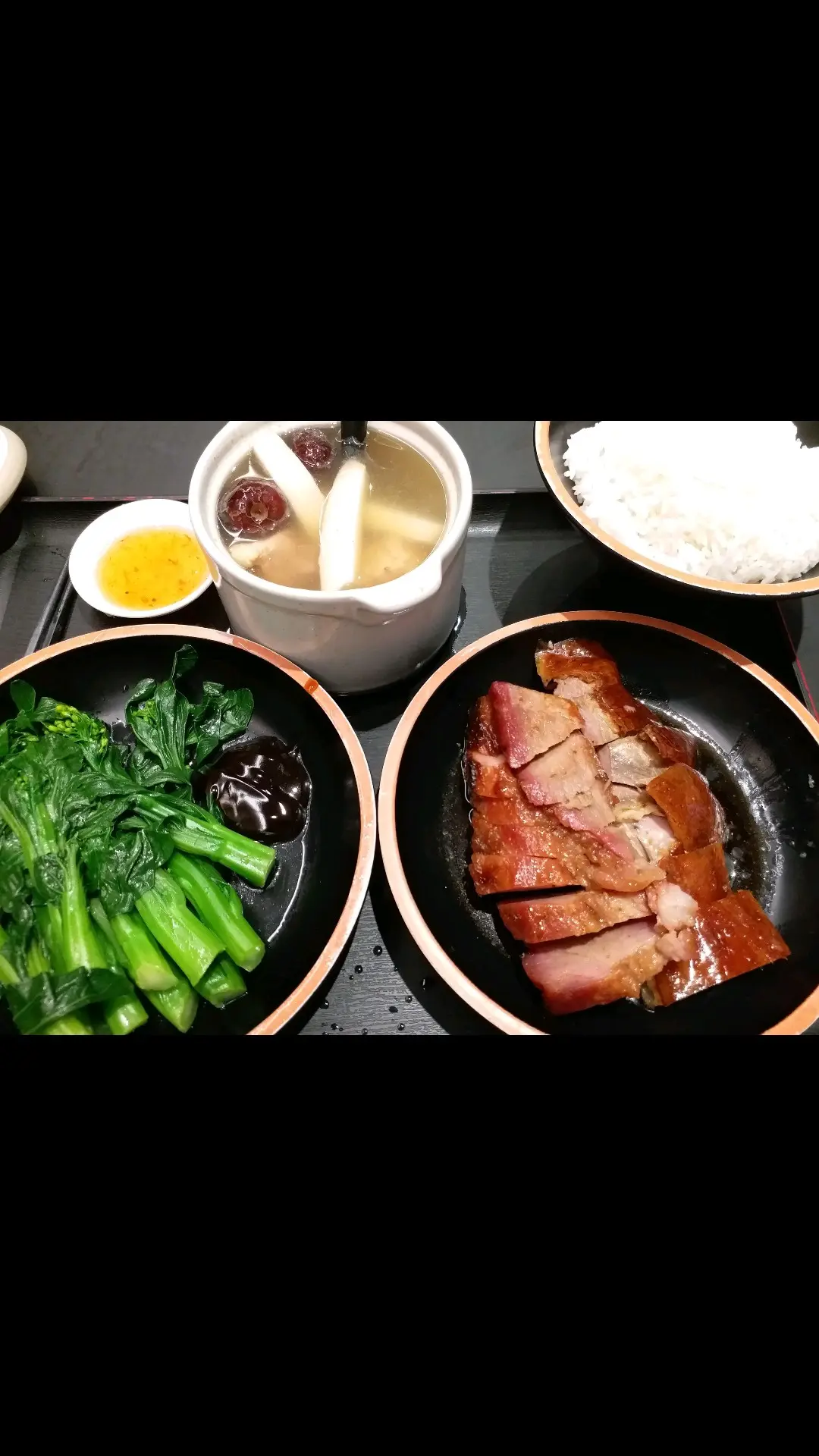 椰子桃膠燉雞,叉燒,燒鵝飯
