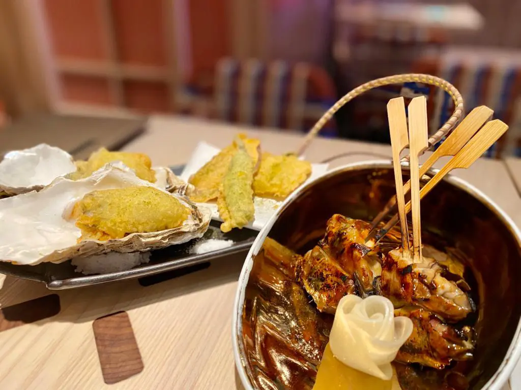 菇燒牡蠣串及牡蠣野菜天婦羅