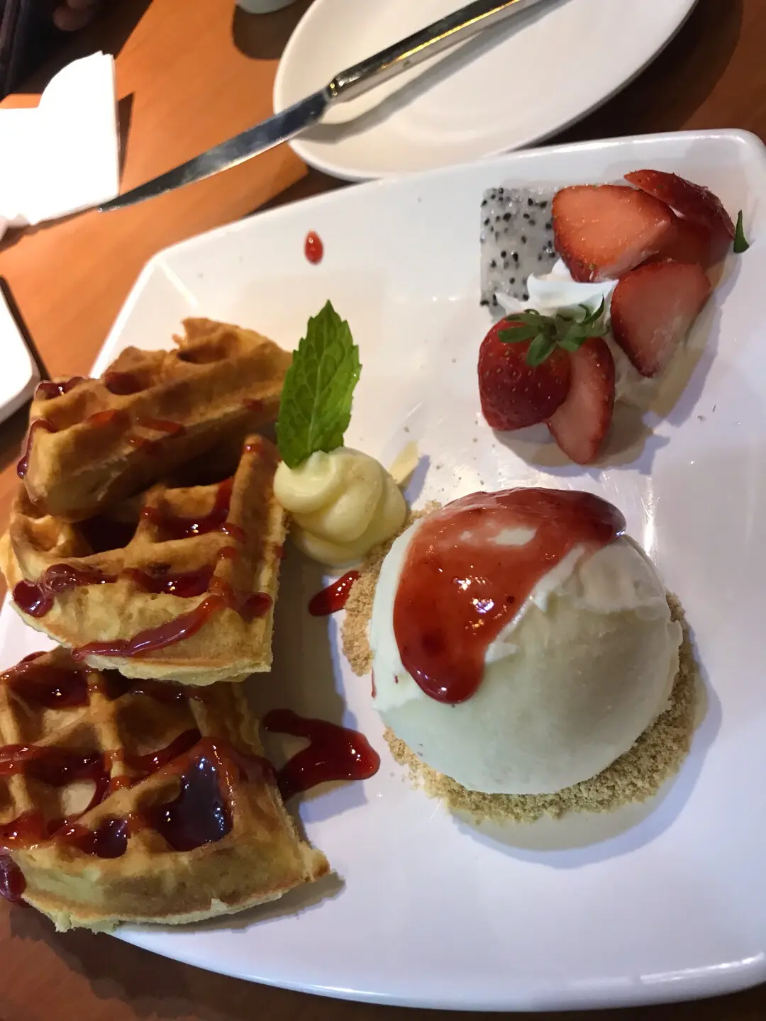士多啤梨窩夫配雪糕