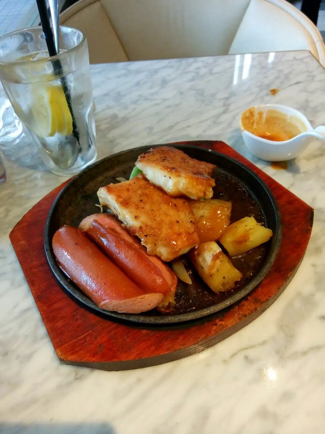 鐵板餐——香煎龍脷魚柳拼珍寶腸