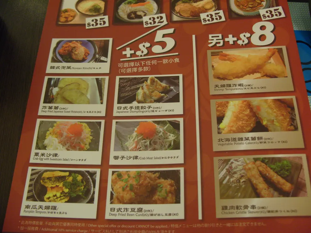 可以另外加$5 or $8有個小食