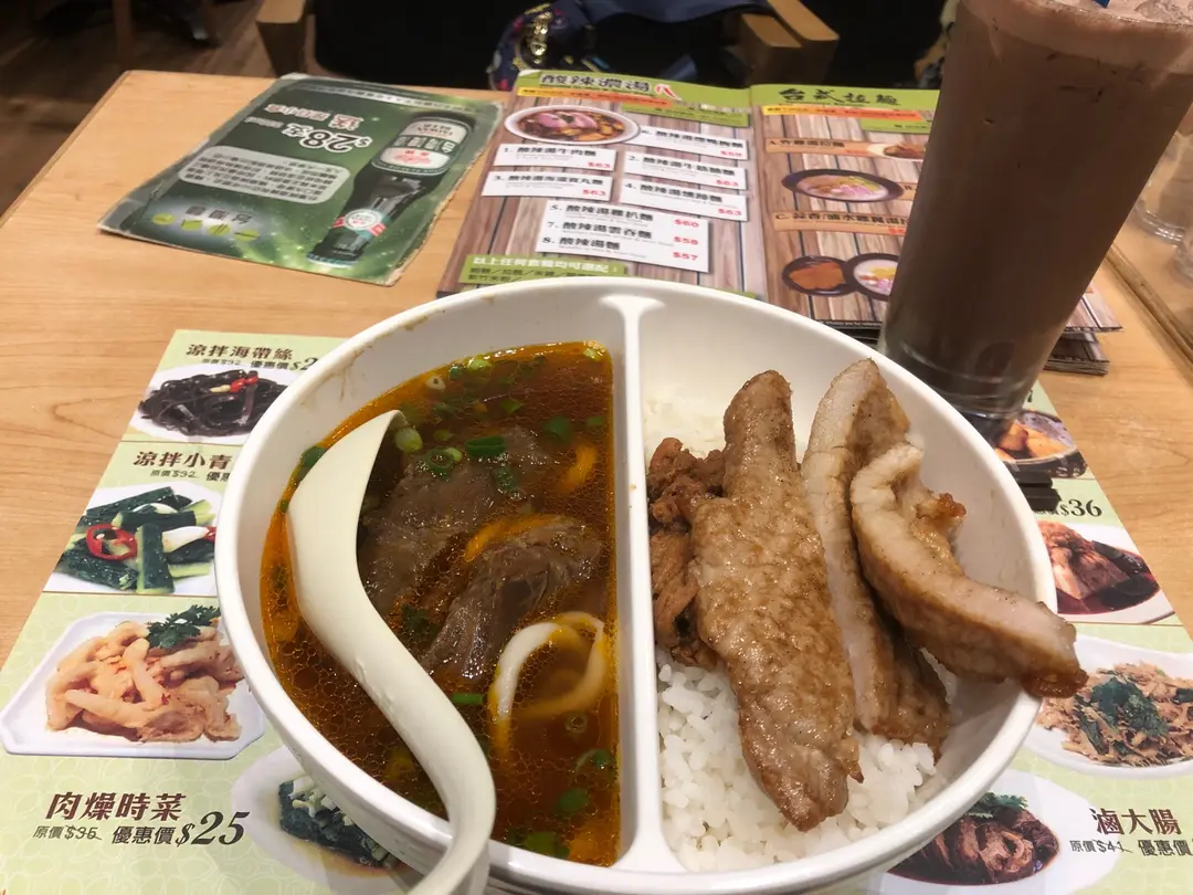 雙排雙格餐(台灣紅燒牛肉麵+椒鹽排骨米線轉飯)